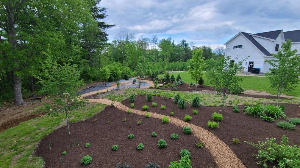 The property had ample open space but lacked definition and character. The homeowners envisioned a design that would bring structure and seasonal beauty while still feeling natural and low-maintenance. They wanted a space that blended ecological planting with artistry — something that would mature gracefully, encourage pollinators, and offer areas for quiet reflection.